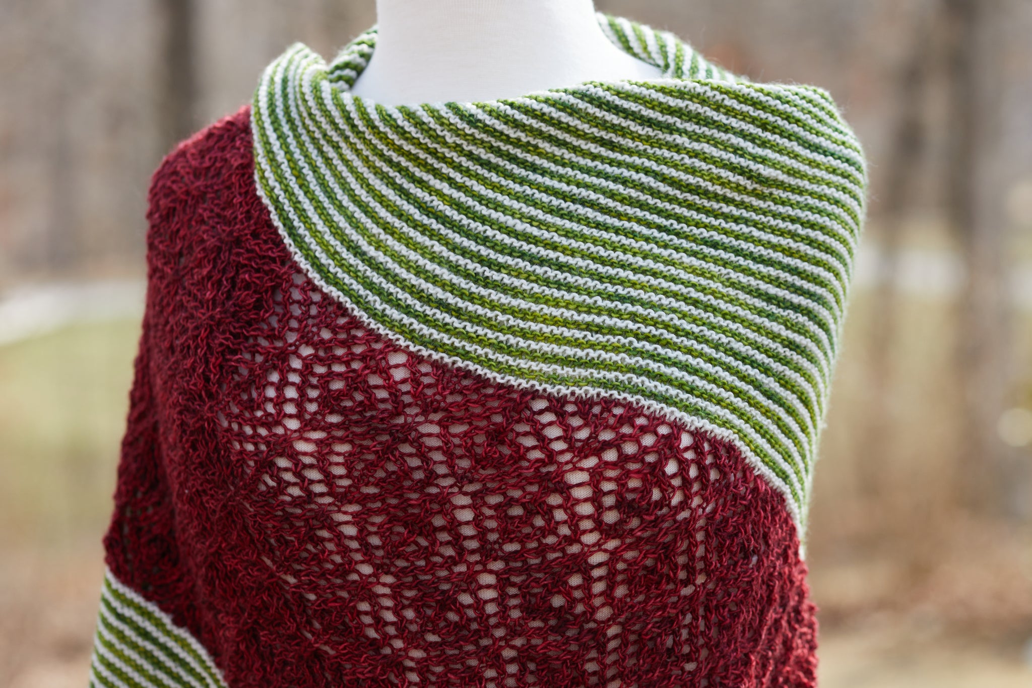 Do you love Christmas as much as we do? Here's a lovely wrap to express your holiday spirit - the perfect warm and cozy accessory for the chilly month of December. Knit out of 100% merino wool (our favorite yarn, actually!), this wrap features a striking mix of stripes and lace panels. It can be worn draped over the shoulders or tied/wrapped around the neck for extra warmth.
